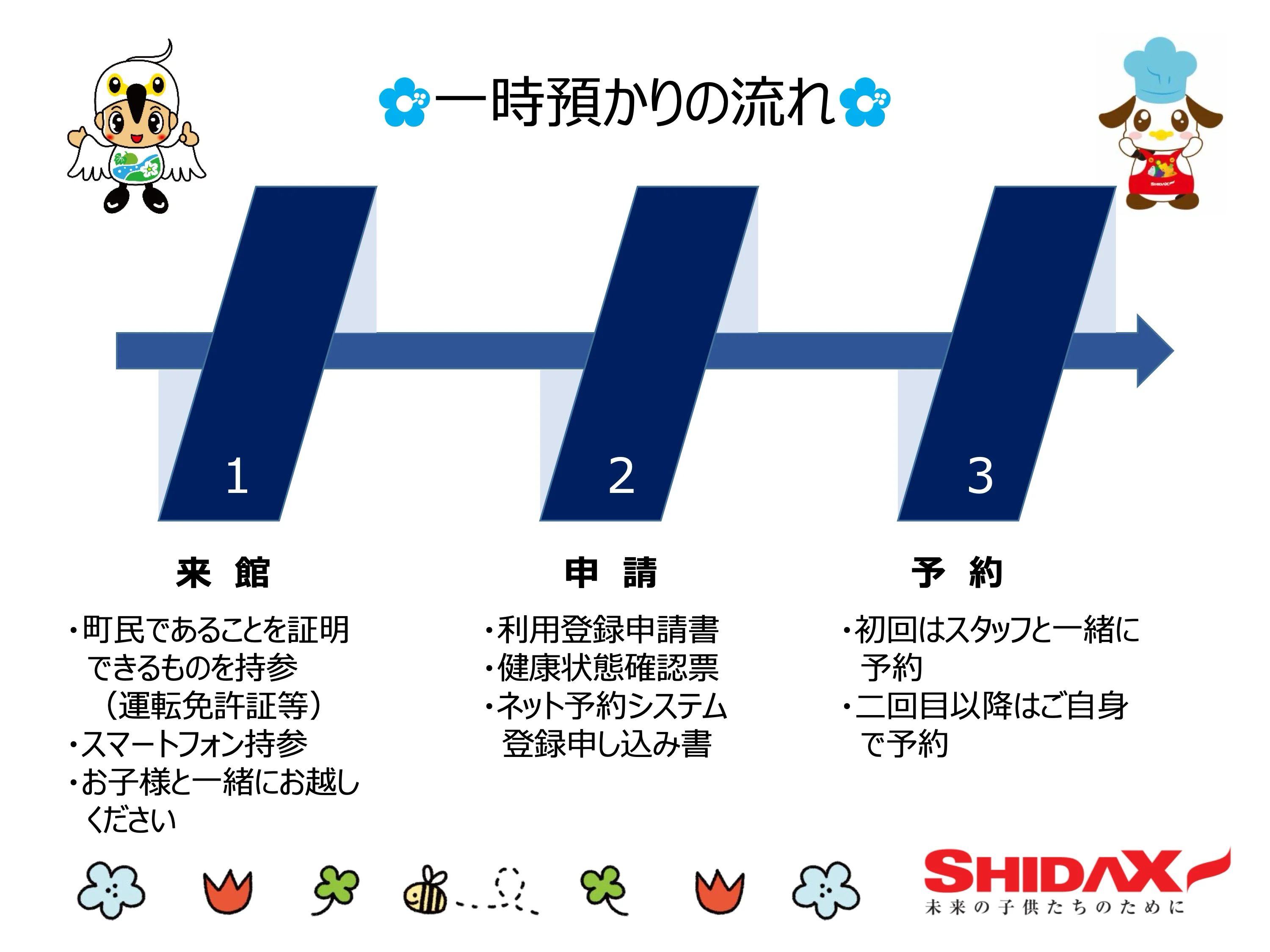 ※一時預かり、相談室、イベントは予約制となります。